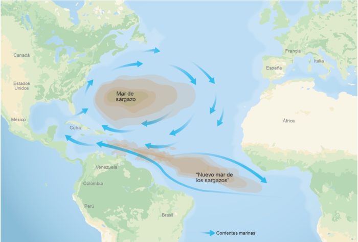 Se trata de un fenómeno relativamente nuevo de acumulación de sargazo entre las costas de Brasil y África, en el Atlántico Sur, al que han denominado “Nuevo mar de los sargazos”.