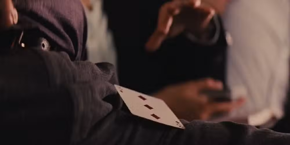 La pista final es lo que hace Rhodes ante la cámara mientras ocurre el truco. Un tema recurrente en todas partes Ahora me ves es la idea de que “el verdadero truco siempre está sucediendo en otro lugar.” Mientras Dray prepara las cartas para su truco, Rhodes comienza a discutir detalles vitales sobre el caso, a saber, que podría haber un quinto miembro de los Jinetes. Mientras distrae a Dray con el equivalente a una gran explosión de purpurina, Rhodes tiene la oportunidad perfecta de tomar la carta y arrojarla sin que nadie se dé cuenta.