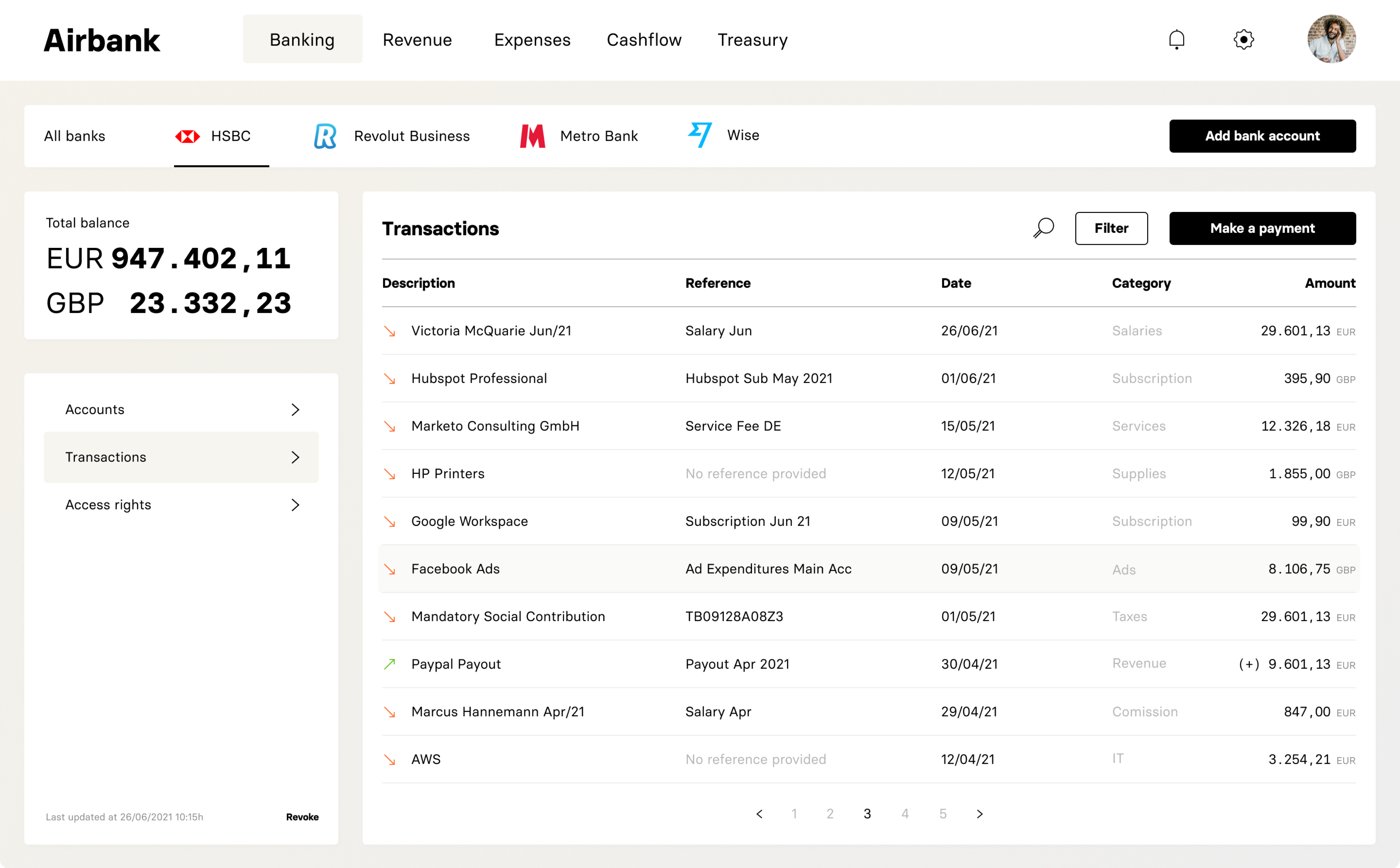 Reunirse Airbank, una startup que está aprovechando la regulación de banca abierta y las API relacionadas para agregar todas sus cuentas bancarias. Centrada en nuevas empresas y pequeñas y medianas empresas, la empresa quiere construir una interfaz bancaria todo en uno para acceder a datos financieros, iniciar pagos, administrar el flujo de caja y más.