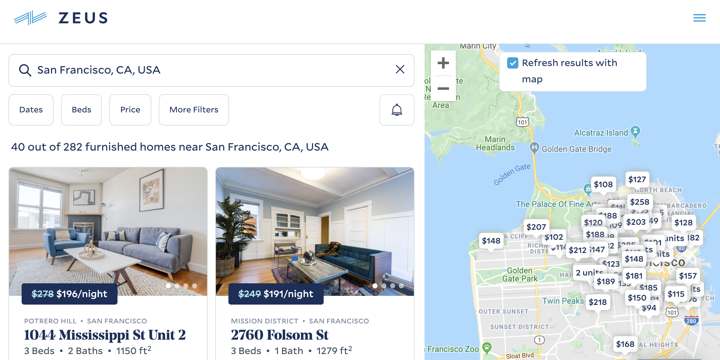 Gracias a las estancias premium que ofrece, Zeus puede cobrarles a los clientes una tarifa lucrativa, mientras que Taggar afirma que su servicio sigue siendo aproximadamente la mitad del precio de una vivienda corporativa estándar. Para los dueños de propiedades, Zeus hace que sea fácil obtener un sueldo de alquiler consistente sin ninguno de los trabajos tradicionales del propietario. Zeus se encarga de la limpieza y el intercambio de claves para que los propietarios no tengan que hacer tareas como si estuvieran ejecutando un Airbnb. Su objetivo es obtener los primeros inquilinos dentro de los 10 días posteriores a la adquisición de una propiedad.