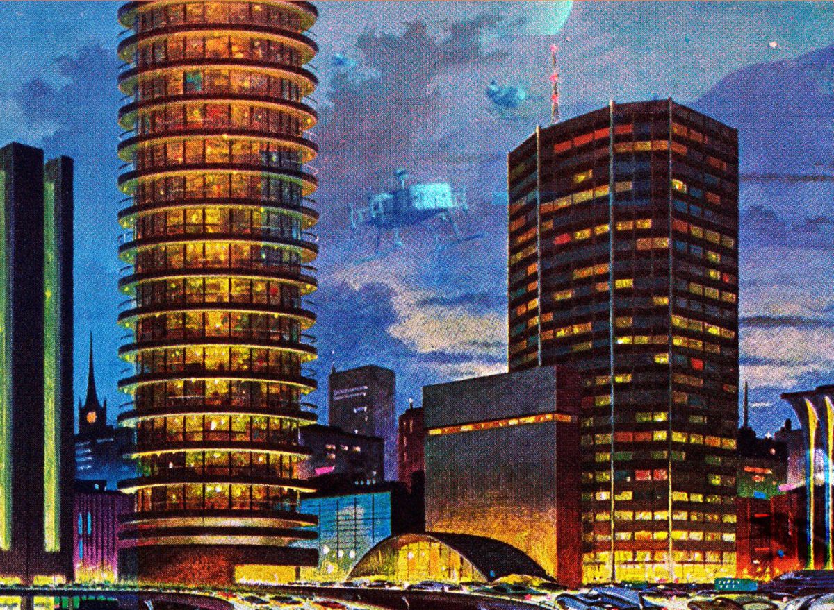 Imaginemos lo siguiente, en un futuro no muy lejano. Más de la mitad de la Tierra está cubierta por árboles y vegetación. En medio de estos bosques, extrañamente simétricos, sobresalen ciudades verticales, megalópolis en las que viven millones de personas. Los edificios están recubiertos con placas solares móviles y son energéticamente autosuficientes, pero en los bajos apenas hay luz: ahí se encuentran millones de fábricas y almacenes completamente a oscuras, donde un ejército de cíborgs trabaja sin descanso. El único medio de transporte urbano que existe son los drones, pilotados por una inteligencia artificial autónoma, que conectan las viviendas entre sí. En las afueras se encuentra una Zona de Exclusión Humana, reservada a los robots de trabajo, donde están situadas varias decenas de centrales nucleares, un parque de árboles artificiales de descarbonización, granjas de servidores y un puerto espacial que conecta la Tierra con las minas de hierro, níquel, oro y platino del cinturón de asteroides NEA.