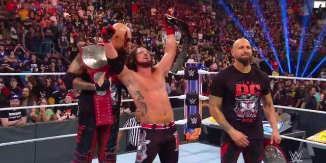 Ricochet hizo su entrada en un equipo de lucha al estilo Nightwing alucinante, y STyles salió con The O.C. a su lado (incluyendo a Gallows una vez más con la pintura de la cara como en sus días NJPW).