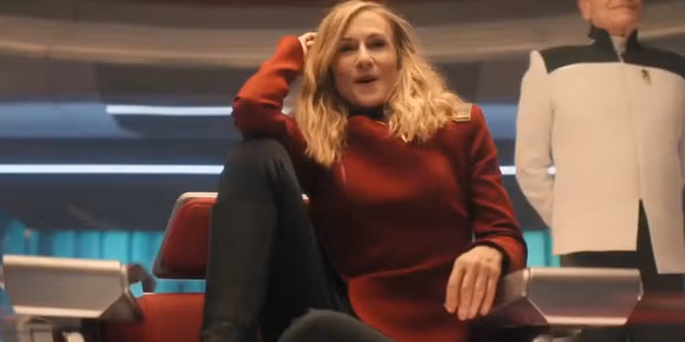 Nahla Ake, una mitad lantana de 420 años de antigüedad, se opone a la tradición como capitana de Star Trek. La canciller de la Academia de la Flota Estelar es también la capitana del USS Athena, pero su presencia en el puente es decididamente poco convencional y poco ortodoxa. La inclinación de Ake por acurrucarse en la silla del Capitán con los pies en alto y leer un libro se ha vuelto popular. viaje a las estrellas fanáticos, que aman y están en contra del comportamiento único de Holly Hunter.
