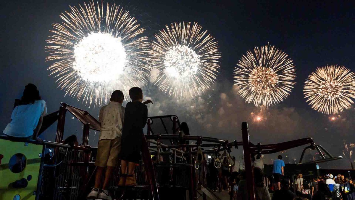 Los bomberos trataron a los encargados de manipular de los fuegos artificiales por lesiones menores y ningún bañista resultó herido, según las autoridades.
