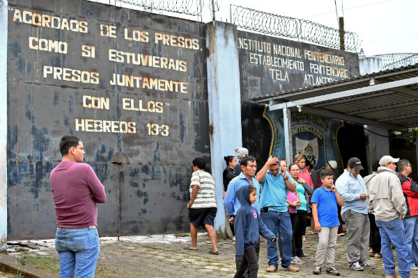 Familiares de los presos se congregaron a las afueras del penal de Tela para conocer la situación de los internos.