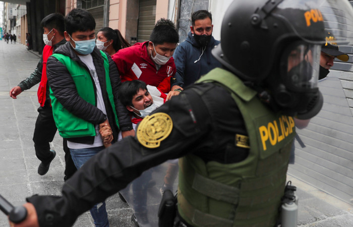 En el centro histórico de la capital, los enfrentamientos entre los manifestantes y la Policía han sido agudos, según cuenta la prensa peruana, después de que los participantes en las protestas intentaran llegar hasta el Congreso y fueran frenados por las fuerzas de seguridad, quienes lanzaron gases lacrimógenos y bolas de goma.