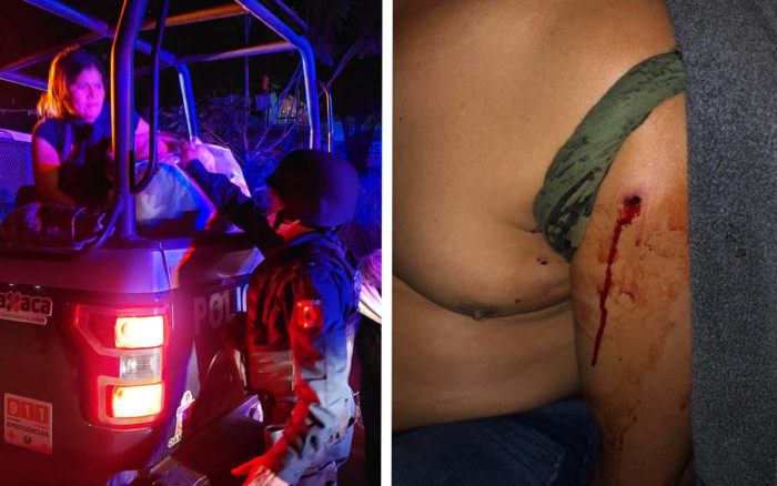 El indígena triqui que recibió el impacto de bala en el hombro fue auxiliado por socorristas, quienes acudieron al bloqueo.