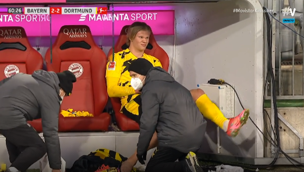 Erling Braut Haaland fue sustituido en el minuto 60 del Bayern Múnich-Borussia Dortmund disputado este sábado tras sufrir molestias en el tobillo derecho como consecuencia de una fuerte entrada de Boateng.
