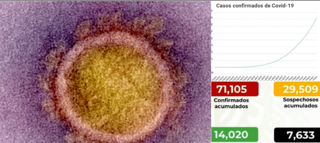 La Secretaría de Salud informó que ya suman 71 mil 105 diagnósticos de Covid-19, los cuales se encuentran distribuidos en mil 378 municipios, 20 más que los registrados hasta este domingo.