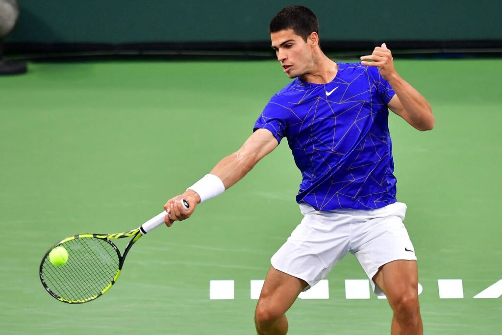 Suda, jadea, se retuerce, se inclina y, de manera inevitable, porque no le queda otra, Gael Monfils dibuja una sonrisilla. Al veterano francés, uno de esos tenistas que están más que de vuelta, 35 años, le sale la risa floja porque le acaba de atropellar un autobús, de nombre Carlos Alcaraz. El murciano, 18 años de pura efervescencia, potencia y vigor, pelotea y disfruta como si en lugar de estar en el quinto grande, esto es, el lustroso y prestigioso marco californiano de Indian Wells, estuviera en la pista de entrenamiento de Villena o jugando una pachanga con alguno de esos amigos de El Palmar.