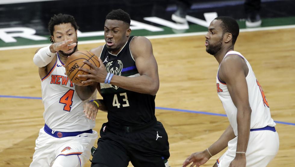 El escolta Alec Burks obtuvo un doble-doble de 21 puntos, 10 rebotes con cinco asistencias y los New York Knicks vencieron a domicilio por 96-102 a los diezmados Bucks en Milwaukee, que sufrieron la segunda derrota consecutiva en partidos disputados en noches seguidas.