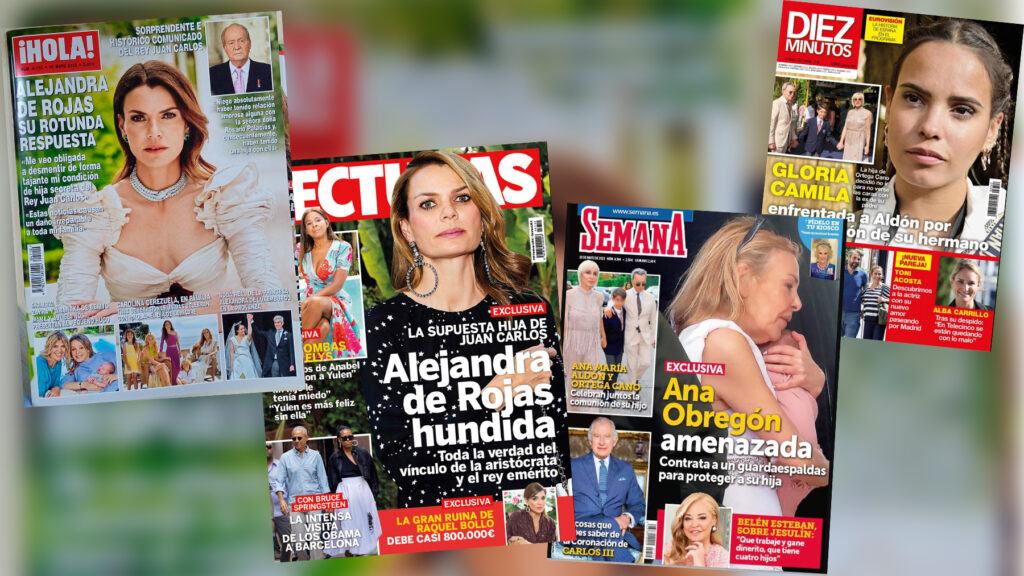 Lecturas lleva a primera plana a la aristócrata Alejandra de Rojas. Después de que la pasada semana en un nuevo libro centrado en Juan Carlos I se apuntara que el padre de Felipe VI tenía otra hija llamada Alejandra -sin entrar en detalles sobre su apellido-, la hija de Charo Palacios se ha convertido en protagonista de la actualidad. Ella misma, a raíz de todo lo que se ha hablado, ha emitido un comunicado a través de su equipo legal en el que deja claro que no es hija de Juan Carlos I. En un reportaje exclusivo, la revista desgrana todos los detalles de esta inesperada noticia. No es esta la única exclusiva que lleva la portada, que ofrece, además, información sobre la presunta deuda de Raquel Bollo, que la ha llevado a una situación delicada, y recoge declaraciones de Arelys sobre la ruptura de Anabel Pantoja y Yulen Pereira. Cierra la portada la visita de los Obama a Barcelona, donde han disfrutado de unos días de relax y de la música de Bruce Springsteen.