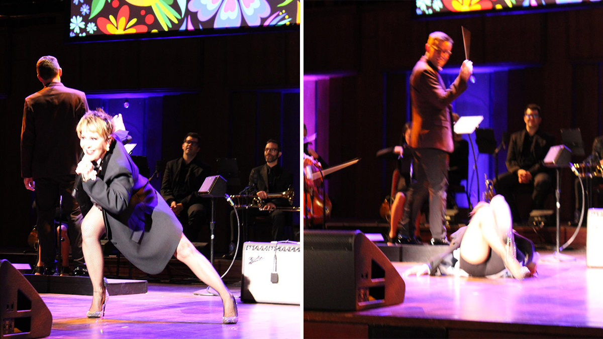 Guzmán, la principal estrella invitada en la gala, estaba interpretando la canción “Mala Hierba” cuando perdió el equilibrio y se cayó hacia atrás.