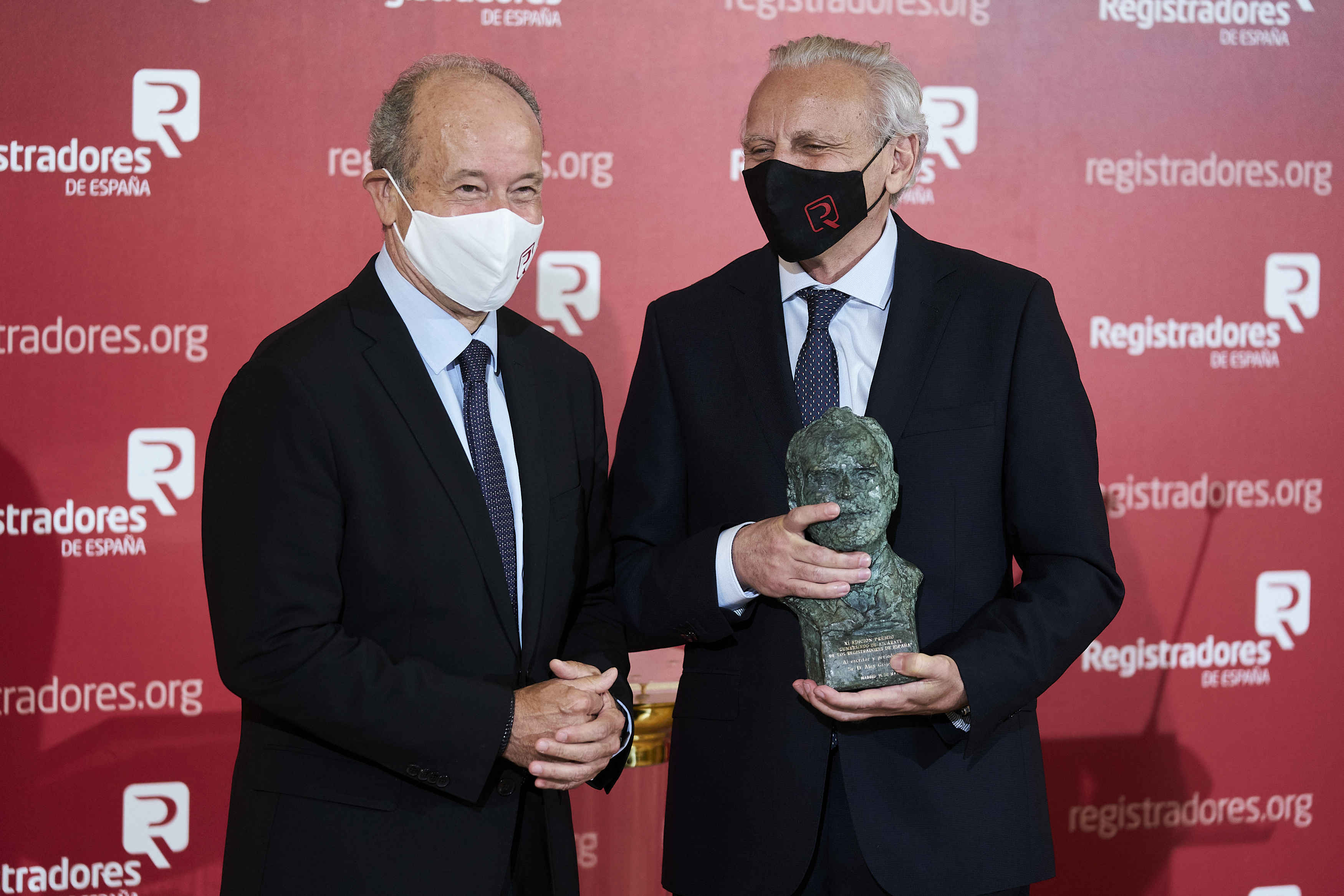 El periodista y escritor Álex Grijelmo, subdirector de EL PAÍS, ha recibido este miércoles el XI Premio Gumersindo de Azcárate de los Registradores de España, que reconoce a las personas o entidades que promueven el Estado social y democrático de derecho y el desarrollo institucional y con ellos la paz, la convivencia y el progreso económico y social. La entrega del galardón se ha celebrado en el Casino de Madrid, en un acto presidido por el ministro de Justicia, Juan Carlos Campo, que ha contado también con la presencia del expresidente del Gobierno Mariano Rajoy, la presidenta del Senado, Pilar Llop, el presidente del Tribunal Constitucional, Juan José González Rivas, la fiscal general del Estado, Dolores Delgado, el consejero de Justicia, Interior y Víctimas en funciones de la Comunidad de Madrid, Enrique López, y otras personalidades del mundo jurídico, político y periodístico.