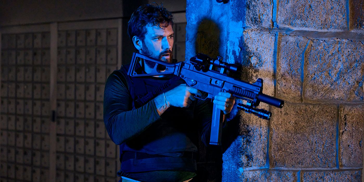 - En el thriller de ciencia ficción ruido negroAlex Pettyfer y su equipo de mercenarios se enfrentan a una peligrosa amenaza desconocida en una isla aislada.