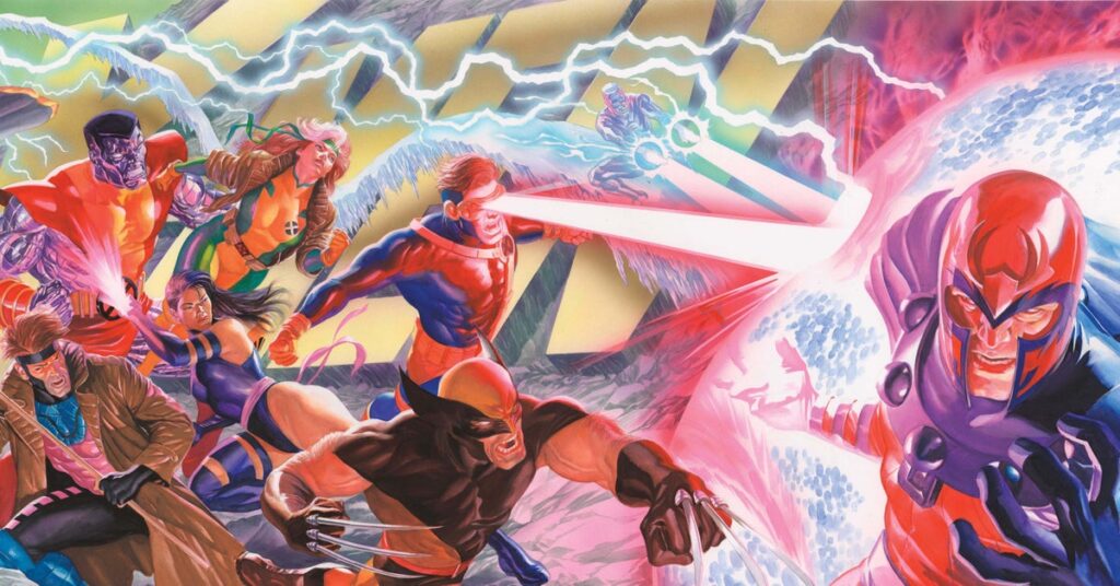 La primera parte de las portadas conmemorativas de Alex Ross llegará el día de agosto Vengadores misteriosos # 1, que reúne a los Héroes más poderosos de la Tierra y a los mutantes bajo el estandarte de Unity Squad una vez más. “Con la pieza de X-Men, originalmente no hice el diseño. Copié un diseño de portada clásico existente que todos conocerían y con el que se conectarían”, explicó Ross. “La pieza de X-Men muestra una acentuación de la acción, donde hay una diferencia de una fracción de segundo más tarde. Wolverine está completando un golpe de ataque completo y todos atacan con más fuerza. Agregué un poco con un rayo proveniente de Storm, que sería un fracción de segundo de movimiento”.
