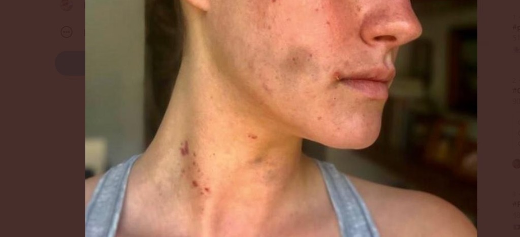 La víctima tiene fotografías que muestran cómo fue golpeada en cuerpo y rostro, además de que presenta marcas en el cuello.