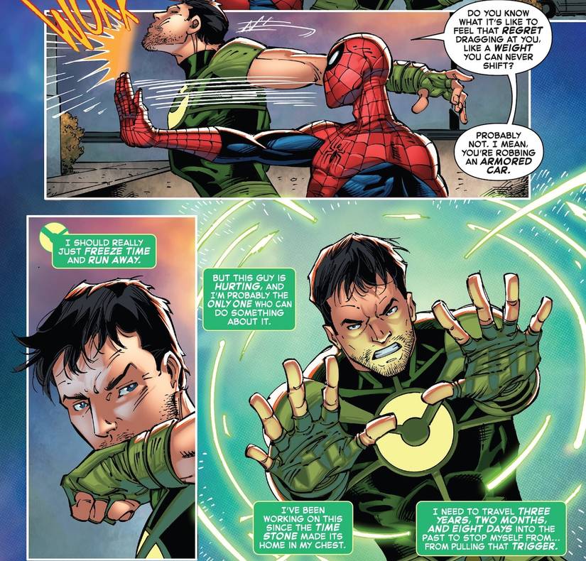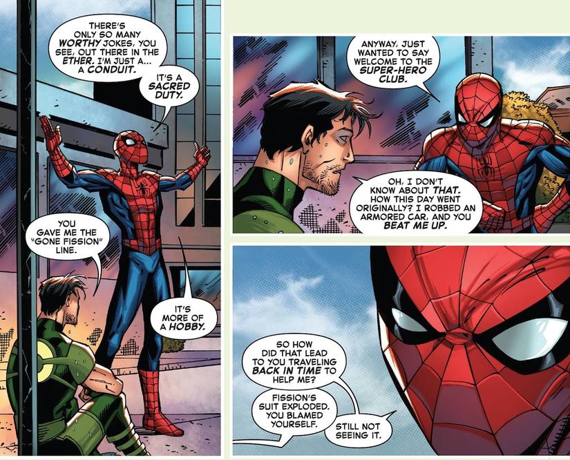 - La culpa de Spider-Man por una muerte innecesaria se resuelve con el héroe viajero en el tiempo Overtime, quien también le roba el chiste.