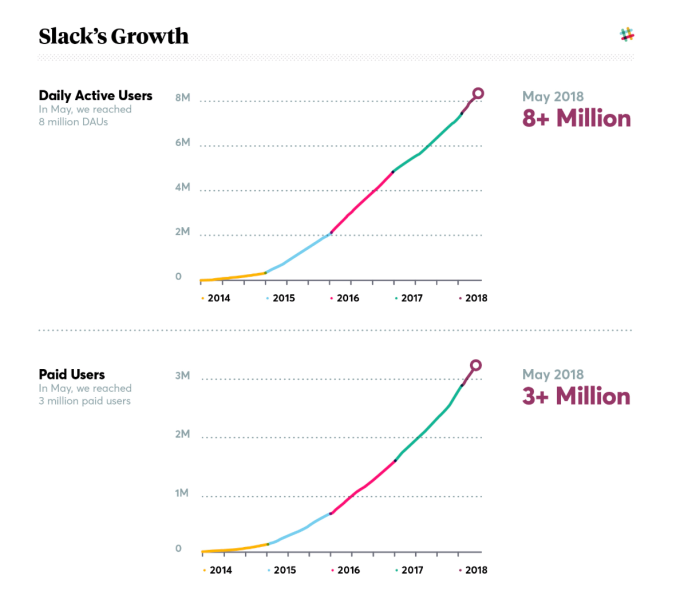Los números de crecimiento de Slack a partir de mayo de 2018