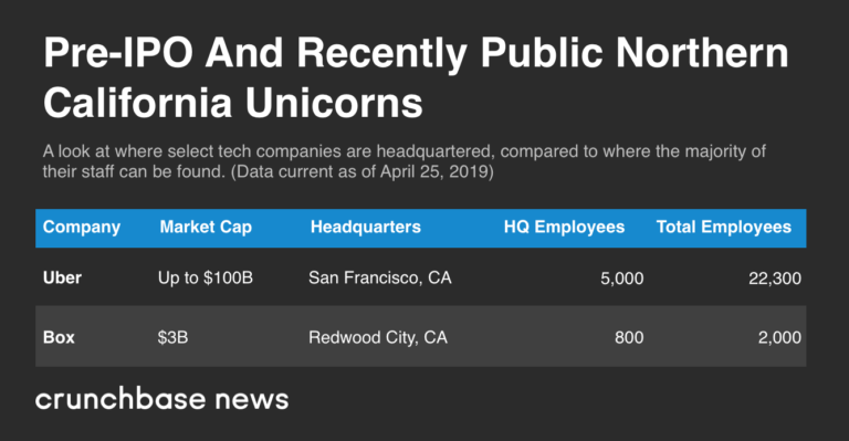 Las preocupaciones de la sobresaturación tecnológica nos llevaron a Crunchbase. Noticias para ver la pregunta: ¿Hasta qué punto las compañías de tecnología lanzadas y basadas en el Área de la Bahía continúan creciendo aquí? ¿Y qué parte de los empleados trabajan en otro lugar?