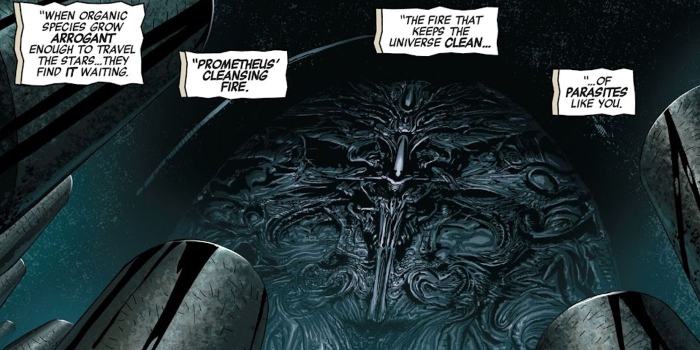“/> Si bien los híbridos, las evoluciones y las muertes clásicas son aspectos integrales del Extraterrestre mitos, la idea de que las criaturas no son sólo “bichos espaciales”, sino armas vivientes empuñadas por horrores cósmicos que la mente humana apenas puede comprender es una de las adiciones más interesantes a Extraterrestre tradición en la historia de la franquicia (sin dejar de ser ridículamente brutal). Este número revela que cada especie lo suficientemente avanzada como para lograr viajes espaciales se encuentra con los Xenomorfos de una forma u otra (incluidos los Ingenieros, que se encontraron con los ‘Xenomorfos’ en la etapa ‘Black Goo’). Esta es una inevitabilidad cósmica, como La tarea de los ‘Xenomorfos’ es mantener la vida bajo control en todo el universo.. Los ingenieros fueron destruidos por Black Goo después de que intentaron “fusionarse” con él usándolo para sembrar vida en otros mundos. Y ahora, los humanos están en el radar de esta fuerza cósmica de la oscuridad, como hibridaciones de Xenomorfos (como se muestra en Extraterrestre vol. 2) están destinados a llevar a la humanidad a un fin rápido y violento, al igual que los Ingenieros.