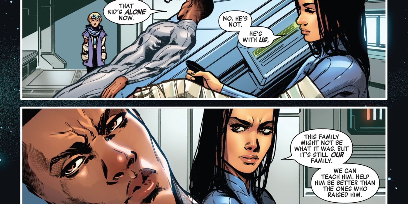 En Extraterrestre vol. 2 # 6 de Phillip Kennedy Johnson y Julius Ohta, un equipo de sintéticos que matan xenomorfos conocido como Steel Team está tratando de escapar de un planeta que ha sido invadido por xenomorfos, Tobler-9. Fueron enviados allí para obtener el material biológico de los Xenomorfos para que la humanidad lo refine en una droga que salve vidas. Cuando llegaron inicialmente a Tobler-9, se sorprendieron al ver que un grupo de humanos había sobrevivido al ataque de Xenomorph y vivían a salvo en el mundo diezmado. Desafortunadamente, eso no duró mucho, ya que la presencia de Steel Team en Tobler-9 provocó una cadena de eventos que llevó a que todos los humanos (y la mayoría de los sintéticos) fueran brutalmente asesinados, todos menos uno: un niño. El cómic, y la serie, terminaron con los dos sintéticos supervivientes saliendo de Tobler-9 con el niño, y quedó clara su intención de criarlo.