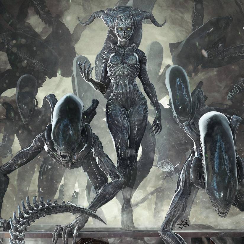 Curiosamente, la idea de que el Xenomorfo no proviene de este plano de existencia, sino más bien de una dimensión infernal que se está infiltrando lentamente en este, no es nueva. En los estudios del siglo XX Extranjero vol. 1-2, el escritor Phillip Kennedy Johnson presenta un personaje al que se hace referencia como “La Diosa” o “La Mujer en la Oscuridad”. Esta entidad acecharía los sueños de aquellos sometidos por un Facehugger, especialmente aquellos que sobrevivieron a la impregnación de Facehugger, maldiciéndolos con visiones precognitivas del día en que ella y su prole de interminables xenomorfos consumirían el universo.