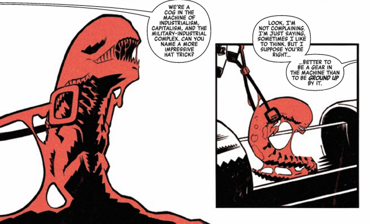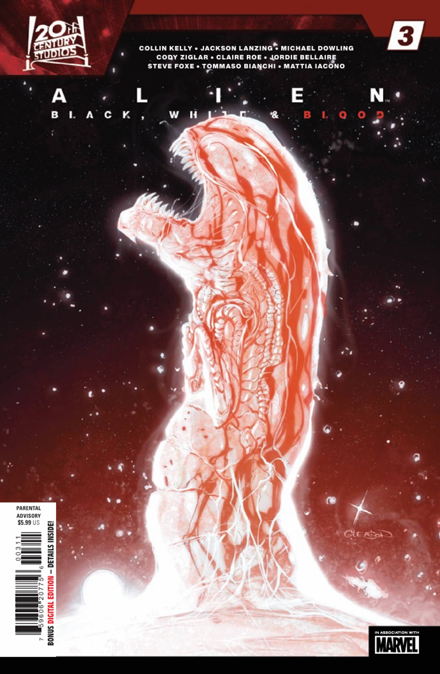 En Alien: Negro, Blanco y Sangre #3, la historia “Gear in the Machine” de Cody Ziglar y Claire Roe se centra en un grupo de trabajadores de Weyland-Yutani que tienen la tarea de preservar especímenes de xenomorfos. En este caso, a los dos se les asigna un grupo de supervivientes en criostasis a quienes se les han implantado bebés extraterrestres tras un ataque xeno. Sin embargo, en lugar de dejar a los anfitriones en criosueño para estudiarlos, en realidad les realizan una cirugía para extraer los extraterrestres embrionarios de sus pechos.