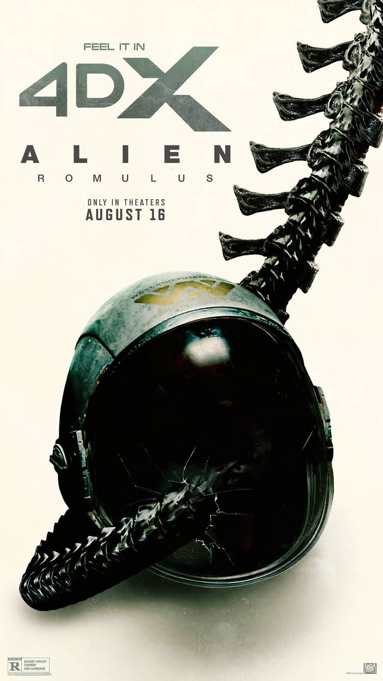 se complace en ofrecer un primer vistazo al arte del cartel 4DX para Extraterrestre: RómuloEl cartel presagia cosas sombrías que le esperan al Extraterrestre: Rómulo El reparto de personajes, con la cola de un xenomorfo perforando la visera de un casco, es la manera perfecta de animar una proyección en 4DX de lo que probablemente sea una de las películas más taquilleras del verano. Échale un vistazo a continuación y prepárate para vivir la experiencia. Extraterrestre: Rómulo en 4DX cuando llegue a los cines el 16 de agosto.