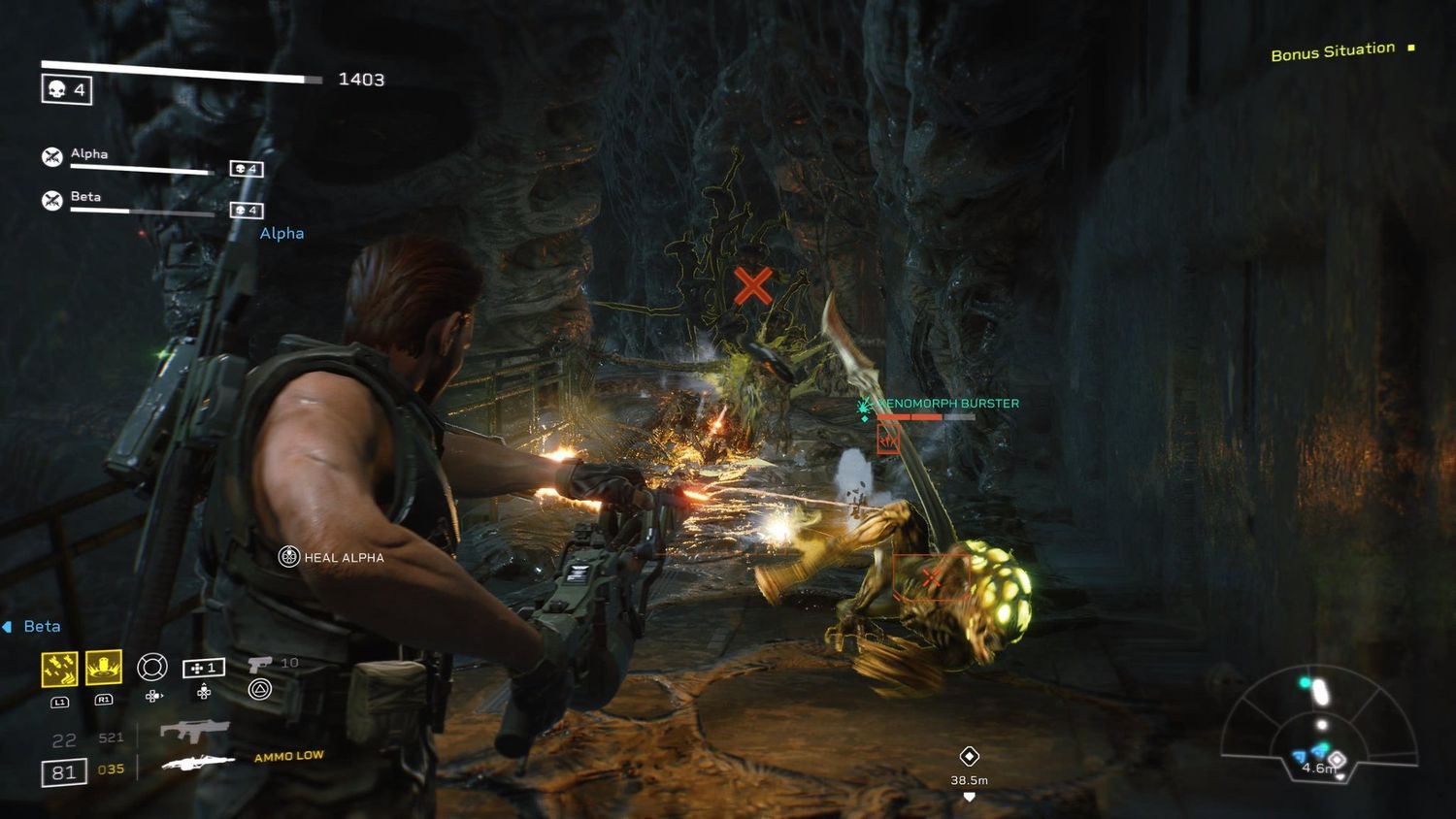 Pero qué bellamente caóticas son las batallas de xenomorfos, con cantidades asombrosas de alienígenas que atacan a los jugadores desde todos los ángulos, moviéndose con una mentalidad de colmena para adelantar a los Marines Coloniales. Alien: equipo de élite evita que los encuentros de combate se vuelvan obsoletos mediante el empleo de diferentes tipos de xenomorfos con varios patrones de ataque, como los guerreros bala-esponja o los escupedores que vomitan ácido. El juego va más allá. agregando androides sintéticos con armas a mitad de la historia, lo que obliga a los jugadores a depender más de disparos de cobertura como Engranajes de guerra para derrotar al nuevo tipo de enemigo. Toda esta variedad de enemigos significa ajustar las estrategias de combate sobre la marcha y gastar grandes cantidades de munición para contener las peligrosas amenazas a las que se enfrentan los jugadores, lo que lo convierte en una experiencia frenética y realmente divertida.