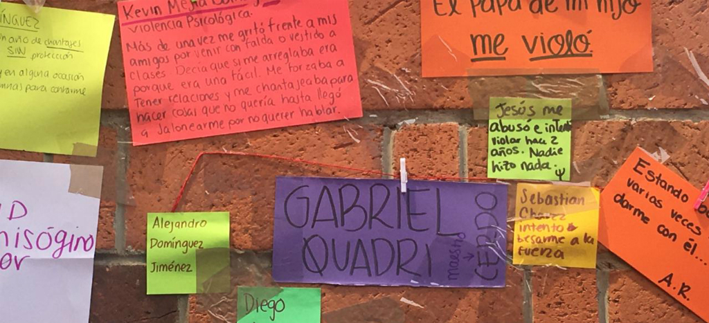 Las jóvenes comenzaron a colgar los nombres de profesores y académicos de quienes presuntamente recibieron alguna agresión. Entre los nombres destacaron el de Gabriel Quadri, excandidato a la presidencia, quien de inmediato negó los hechos.