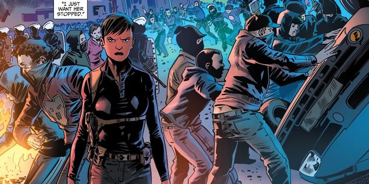 El caos sobreviene cuando Waller despliega a Deadshot y otros para evitar que Flag asesine al senador. Este es un ejemplo clásico de las guerras civiles internas que enfrenta el equipo entre sí. Y como siempre, Amanda Waller sirve como una manipuladora clásica, sin revelar sus verdaderas intenciones ni al enemigo ni a su propio equipo.