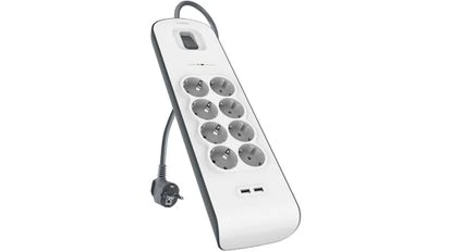 A veces, los cables nos juegan malas pasadas y no siempre los tenemos en orden y lo mejor protegidos posibles. El aparato cuenta con ocho tomas y dos puertos USB, los tendremos en un mismo lugar. Esta regleta Belkin está preparada ante picos de corriente y dispone de interruptor de encendido, tapas deslizantes de seguridad que ayudan a prevenir acceidentes con niños, además de un cable de alimentación de dos metros. Su carcasa robusta está protegida ante impactos.