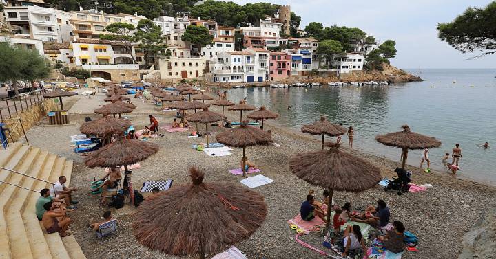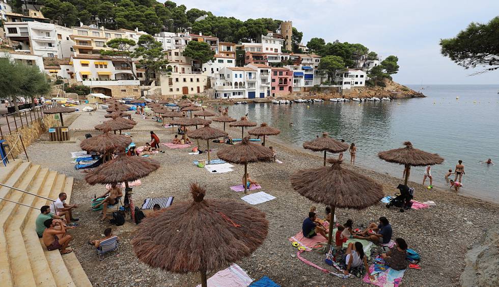 “A veure, a quina hora cal venir per trobar lloc a la platja?”, pregunta un turista atònit i resignat. Són dos quarts de nou del matí d’un dimecres d’agost xafogós i ennuvolat. L’encarregada de l’aparcament habilitat a la platja d’Aiguablava, a Begur, l’acaba de tancar. Mira el rellotge i li respon: “Entre les set i les vuit”. Efectivament, les primeres de les més de 230 persones que fan cua per a la platja han arribat a un quart de vuit. Gaudiran d’un dels para-sols que l’Ajuntament ha clavat a la sorra per guardar les distàncies a les quals obliga la covid-19. El virus ha fet que aquest any Begur tingui tres tipus de control a les platges. Un estiu de cues a l’estanc, la fleca i les botigues en general, amb un mercat sense encant i unes nits de dissabte de silenci dolorós després de mig segle ininterromput de sardanes a la plaça. Però sense perdre el glamur.