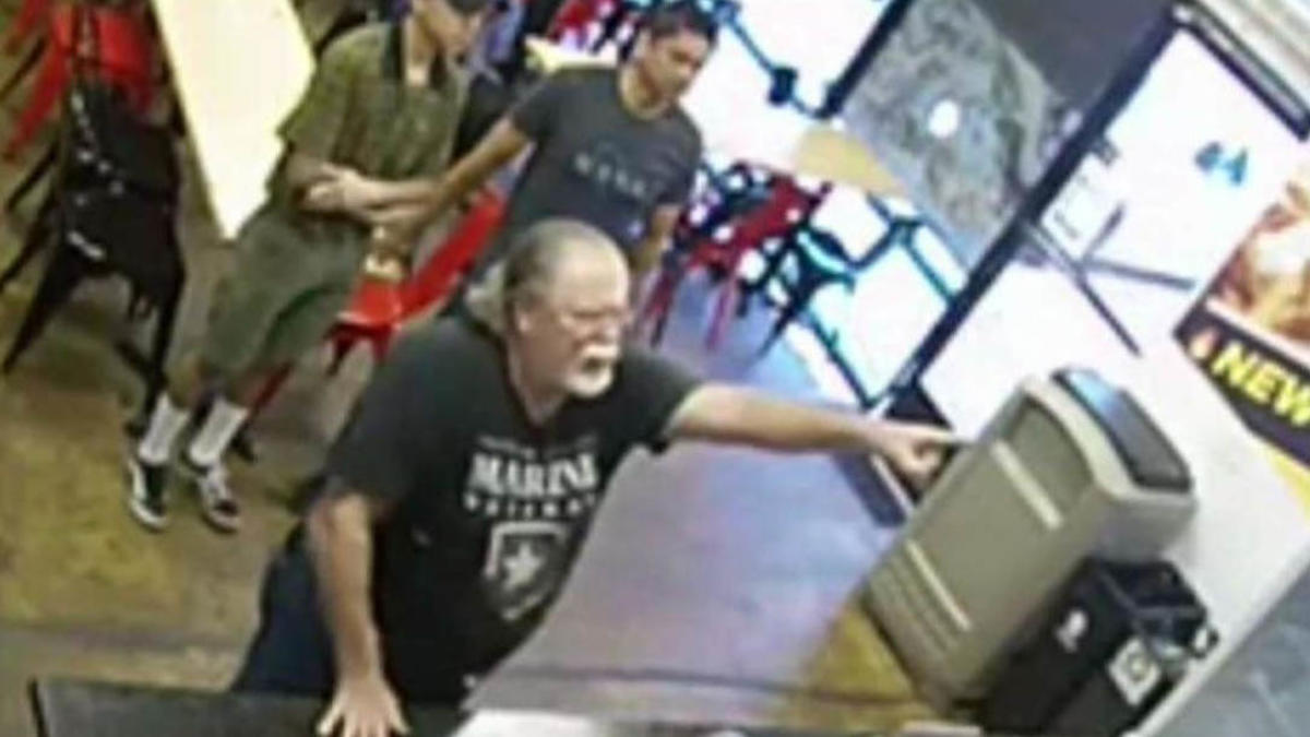 La cámara de vigilancia de la taquería captó al cliente arremeter verbalmente contra los empleados y otros clientes.