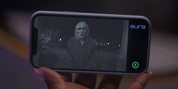 Siguiendo a la pareja casada Jaslyn (Gabourey Sidibe) y Bryce (Max Greenfield) después de mudarse a una nueva casa, Historias de terror americanas“Aura” coloca rápidamente a la pareja en una situación traumática una vez que Jaslyn compra un dispositivo de seguridad para el hogar Aura. Jaslyn, que todavía tiene ansiedad por un violento allanamiento de morada cuando era niña, pronto recibe notificaciones de que un hombre inquietante está en la puerta de su casa pidiendo que la deje entrar, pero cuando abre, no hay nadie allí. Historias de terror americanasEl episodio revela que el hombre era un conserje de la escuela secundaria de Jaslyn que se obsesionó con ella y que su imagen solo se puede capturar con la cámara Aura. Antes del final de “Aura”, Historias de terror americanas La temporada 2 explica que el dispositivo es misteriosamente capaz de detectar y mostrar fantasmas, lo que lleva a más personas del pasado de Jaslyn y Bryce a acercarse a la puerta de su casa.