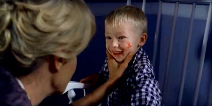 La forma en que Michael Langdon puede pasar de asfixiar a la mujer que lo cría a pedirle dulcemente un vaso de agua lo convierte en un villano aterrador. Para agregar aún más profundidad a la escena, todo lo que hace Constance es corregir su gramática a “¿Puedo tener un vaso de agua?” Michael soluciona esto rápidamente. A pesar de saber que se romperá sin previo aviso, la audiencia quiere confiar en él mientras crece.