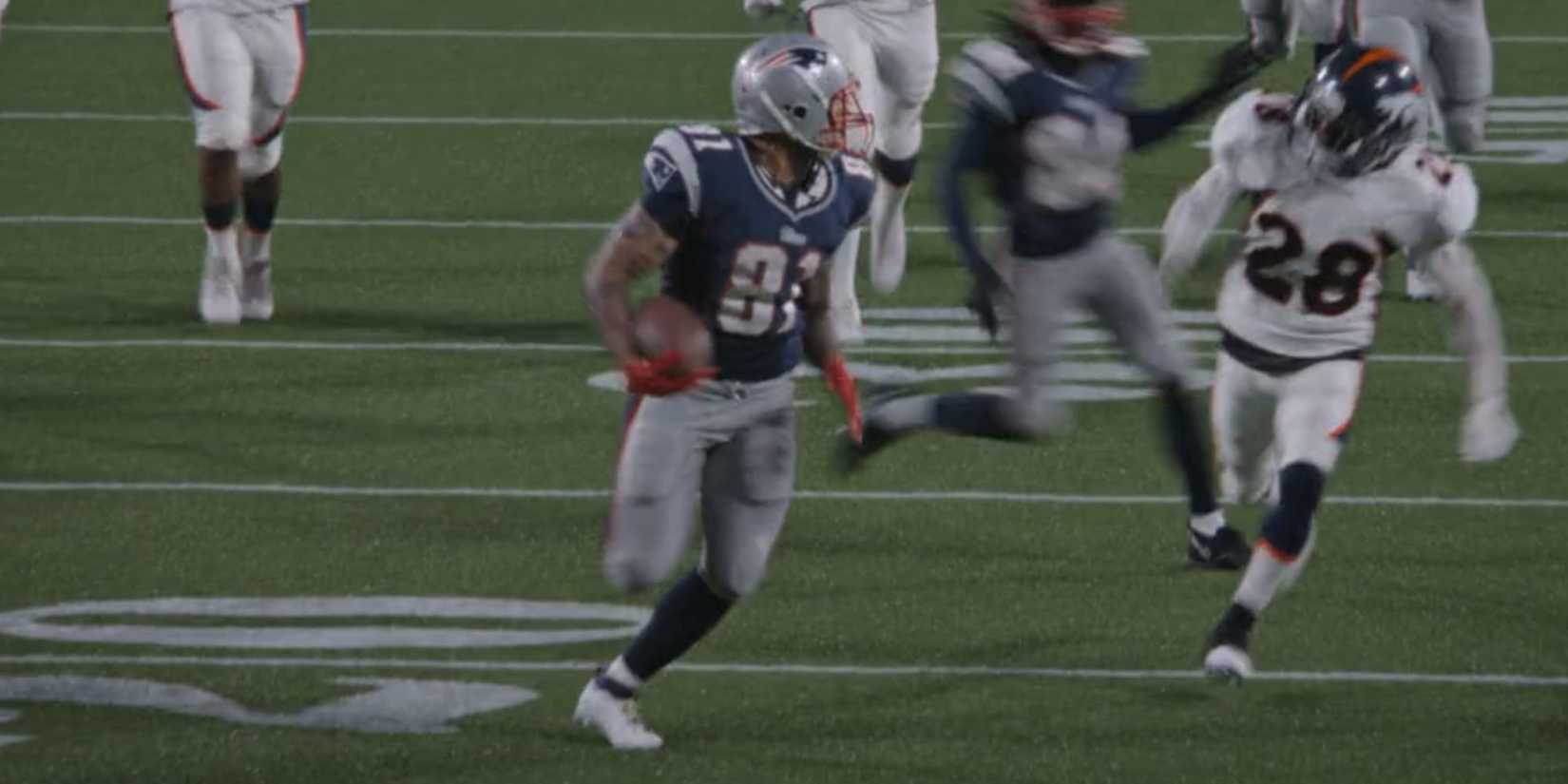 Hernández tuvo un total de 97 yardas recibidas, el máximo de la temporada, en la victoria como visitantes de los Pats.