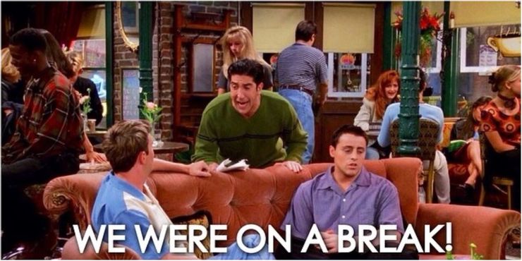 La frase que lanzó mil memes y se convirtió en una broma recurrente en el programa, “Estábamos en un descanso” tuvo tanta exposición que incluso se volvió molesta. Hablado por Ross a lo largo de las temporadas 3 y 4, la famosa frase lleva a Chandler a decir: “¡Dios mío, si lo dices una vez más, voy a romper contigo!”.