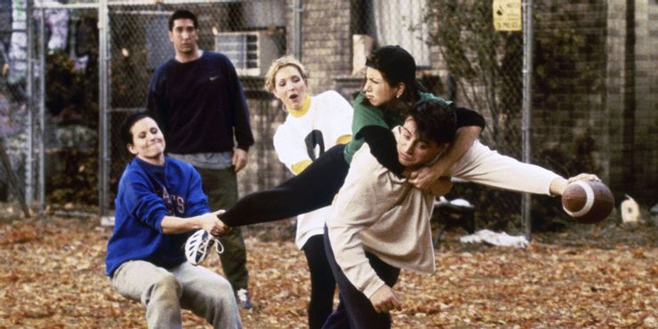Las chicas intentan saltar sobre la espalda de Joey e incluso hacer que Phoebe le muestre a Chandler, lo cual es una distracción particularmente divertida porque es típico de Phoebe no tener miedo de hacer tal cosa. El juego da como resultado que Ross y Monica no quieran soltar la pelota, y la diversión proviene de ver que la pareja claramente no ha crecido y todavía están atrapados en su relación de hermanos competitivos.