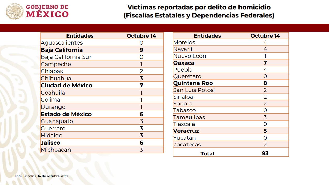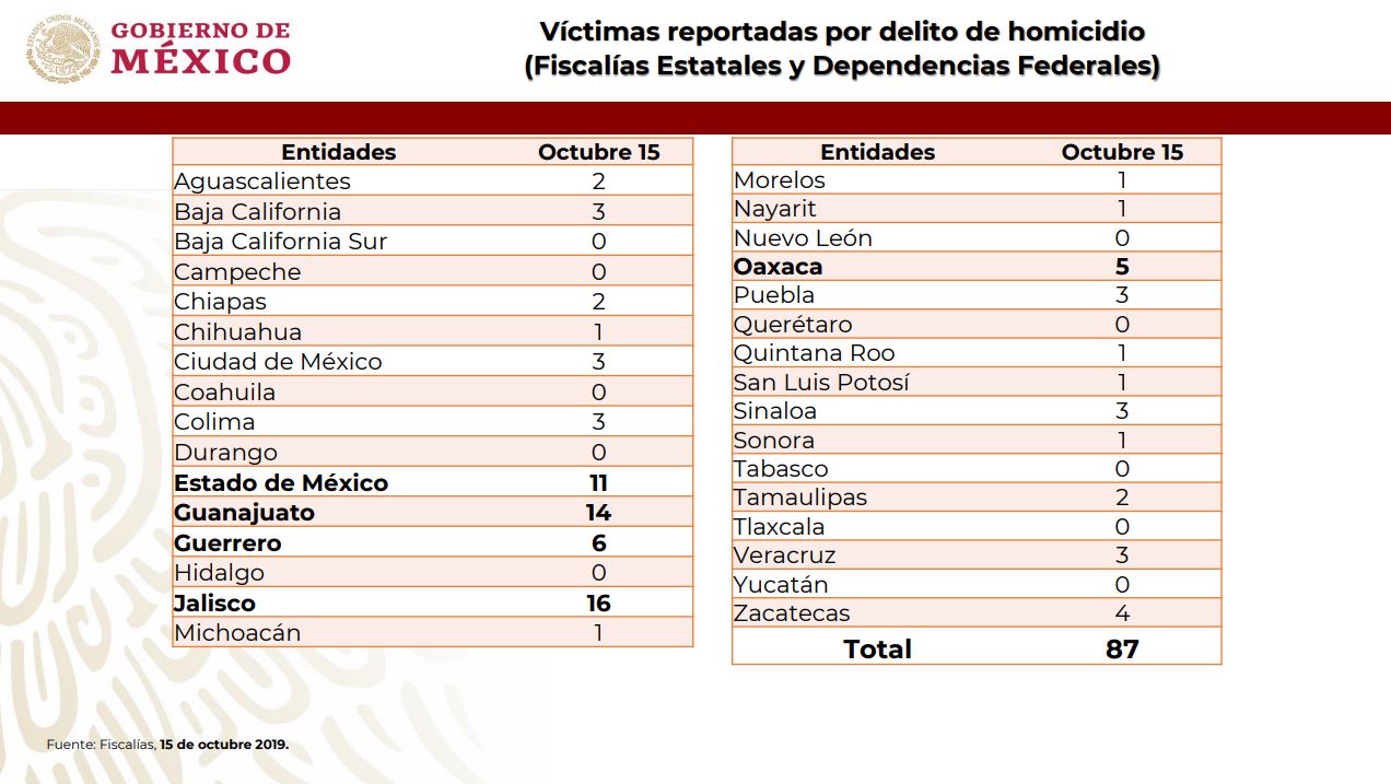 “No se registraron ni ayer ni hoy. Incluso en el caso de Michoacán se están reconstruyendo los hechos. Se está sabiendo que fueron dos enfrentamientos, antes de lo que pudo ser una emboscada hubo un enfrentamiento, donde perdieron la vida tres policías primero y luego fue la pérdida de más elementos de la policía estatal”, dijo.