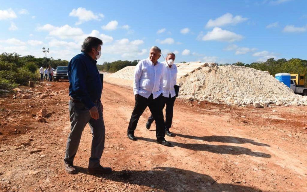 Al supervisar las construcciones del Tren Maya, el Presidente destacó que el tramo dos Escárcega-Calkiní del Tren Maya, de alrededor de 220 kilómetros, está a cargo de la Constructora Carso.
