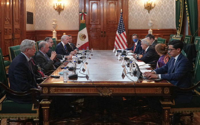 El presidente Andrés Manuel López Obrador se reunió este lunes en Palacio Nacional con cinco senadores estadounidenses, de los partidos Demócrata y Republicano, además del encargado de negocios de la embajada de ese país en México, John Creamer.