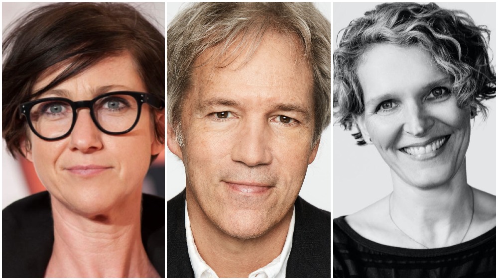 De izquierda a derecha: SJ Clarkson, David E. Kelley, Melissa James Gibson