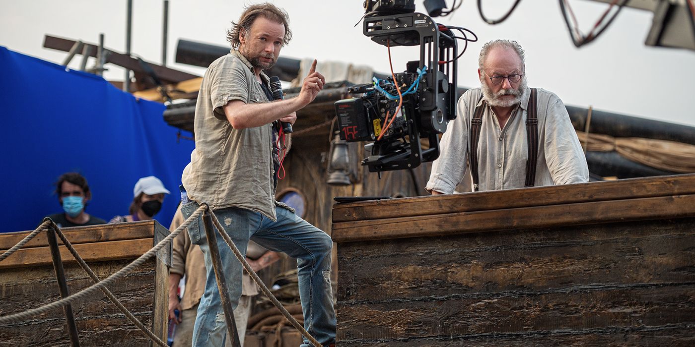 André Øvredal: Se trataba de basar todo en una iluminación realista, pero también de crear oscuridad y crear el espacio entre la luz y la oscuridad. Suena tan obvio en cierto modo, pero cuando estás haciendo una película que trata sobre pura maldad, al final, tienes que usar esos contrastes. Siempre lo pensé en términos de “es una película en blanco y negro en color”, porque tiene que ser brillante y cruda, como una película en blanco y negro, pero al mismo tiempo, estamos en un espacio de color. . Entonces, también, el diseño de colores en el espacio es muy tenue y muy realista en lo que sería el barco en este momento de la historia. Me divertí mucho trabajando con Tom Stern en esta película.