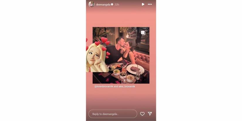 Ángela felicitó a sus amigos Loren y Alexei Brovarnik a través de sus Historias de Instagram. La pareja cumplió recientemente nueve años de matrimonio. Habían aparecido por primera vez en Prometido de 90 días temporada 3 mucho antes de que Angela hiciera su debut en la franquicia. La pareja fue a cenar para celebrar su gran día y compartió algunas fotos en Instagram. Angela volvió a publicar esta publicación que muestra a Alexei dándole un dulce beso en la mejilla a su esposa. Angela agregó una calcomanía de emoji de ella misma rodeada de corazones para expresar sus sentimientos por la Prometido de 90 días pareja con la que está vinculada.