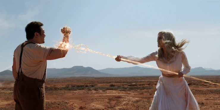 Es una de las cosas más extrañas para entrenar porque estás tirando cosas, agarrando cosas, partiéndolas por la mitad. Te sientes un poco loco. Estás extendiendo tu mano como si estuvieras pensando: “¿Eso es una espada? ¿Es una lanza? ¿Es un lazo? ¿Qué estoy haciendo?” Luego te metes y se vuelve muy divertido, pero es un rompecabezas.