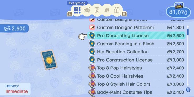 Adquirir la licencia de decoración profesional en Cruce de animales es relativamente simple. Los jugadores simplemente necesitan acceder a Nook Stop, ubicado en Servicios para residentes, para encontrarlo. Seleccione “Canjear millas de Nook”, desplácese hacia abajo, luego elija “Licencia de decoración profesional” de la lista. La licencia cuesta 2500 millas Nook y los jugadores lo “aprenderán” inmediatamente después de la compra, similar a las recetas de bricolaje y las expansiones de inventario. Una vez que se ha aprendido la licencia, los jugadores pueden comenzar a experimentar con nuevas características de decoración para ver qué se adapta mejor a su hogar.