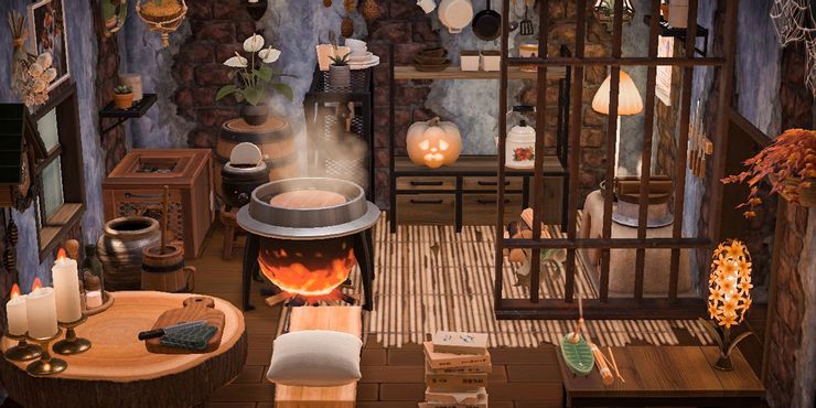 Cruce de animales: nuevos horizontes los jugadores también pueden crear una cocina que sea más probable que se encuentre fuera de la realidad si así lo desean. usuario de Twitter WitcherCruce hizo precisamente eso al diseñar su espacio para cocinar como si fuera el de una bruja. Para lograr esto, identificaron opciones temáticas a gran escala como cálido. colores otoñales y artículos desgastados y naturalistas como el caldero y el papel tapiz rasgado que serían apropiados para el hogar de una bruja.
