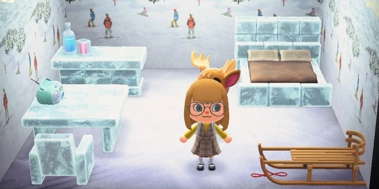 El papel pintado de Erik muestra a los esquiadores en una pendiente invernal, y todas sus decoraciones están talladas en hielo con una paleta de tonos similares. El exterior de la casa refleja una cabaña de invierno que uno podría encontrar en la ladera de una montaña, lo que fomenta el tema invernal de Erik y lo convierte en el complemento perfecto para los jugadores que diseñan un Winter Wonderland permanente. Además, la solicitud de la acogedora cabaña de montaña de Erik en El paraíso del hogar feliz de New Horizons asegura que el DLC también pueda experimentar algunos diseños invernales.